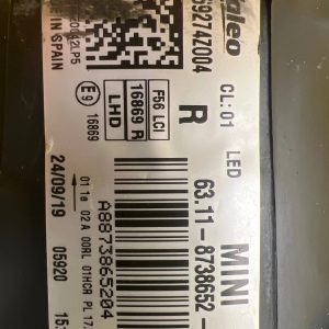 Phare droit Mini Cooper F56 F57 Lift Full Led 8738652-04