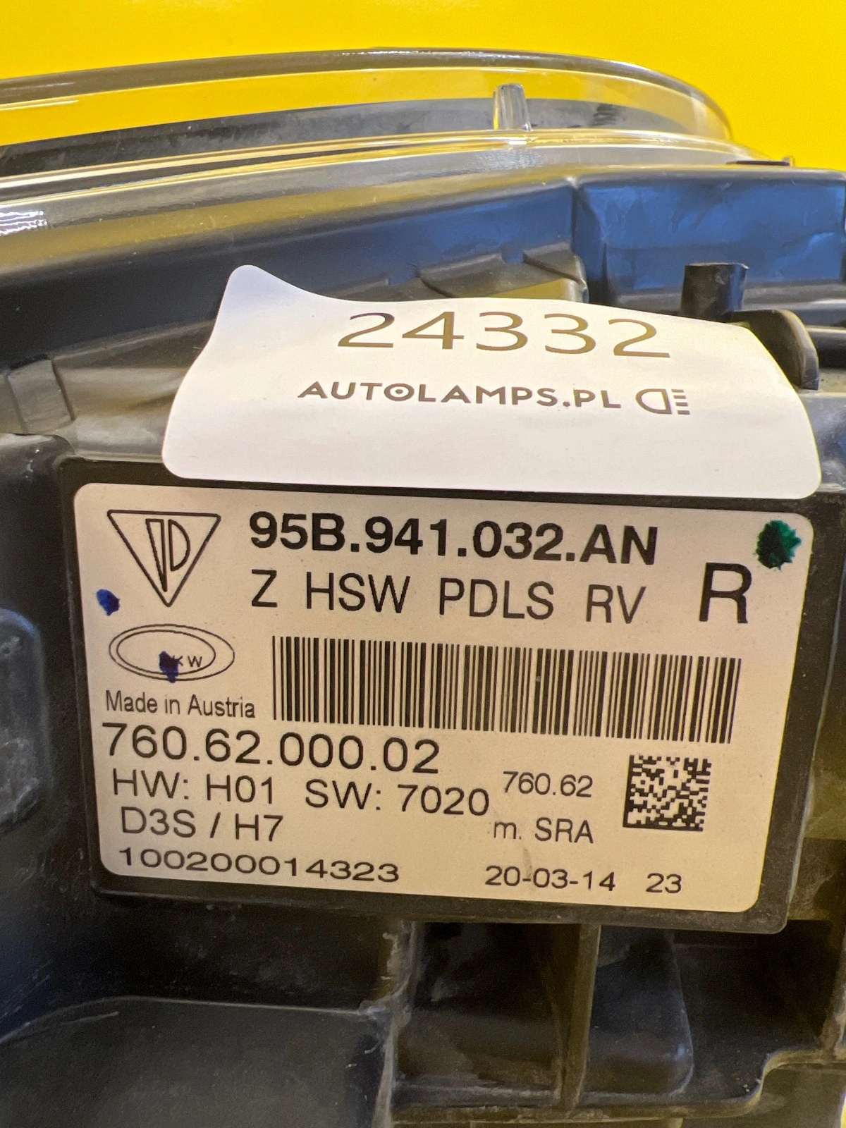 Les phares proposés dans notre boutique sont d’occasion, mais ils sont tous soumis à un diagnostic détaillé réalisé par nos spécialistes. Le phare présenté, portant le numéro de référence 95B941032AN, est une pièce d’origine, entièrement compatible avec le véhicule Porsche MACAN et 100 % fonctionnelle !