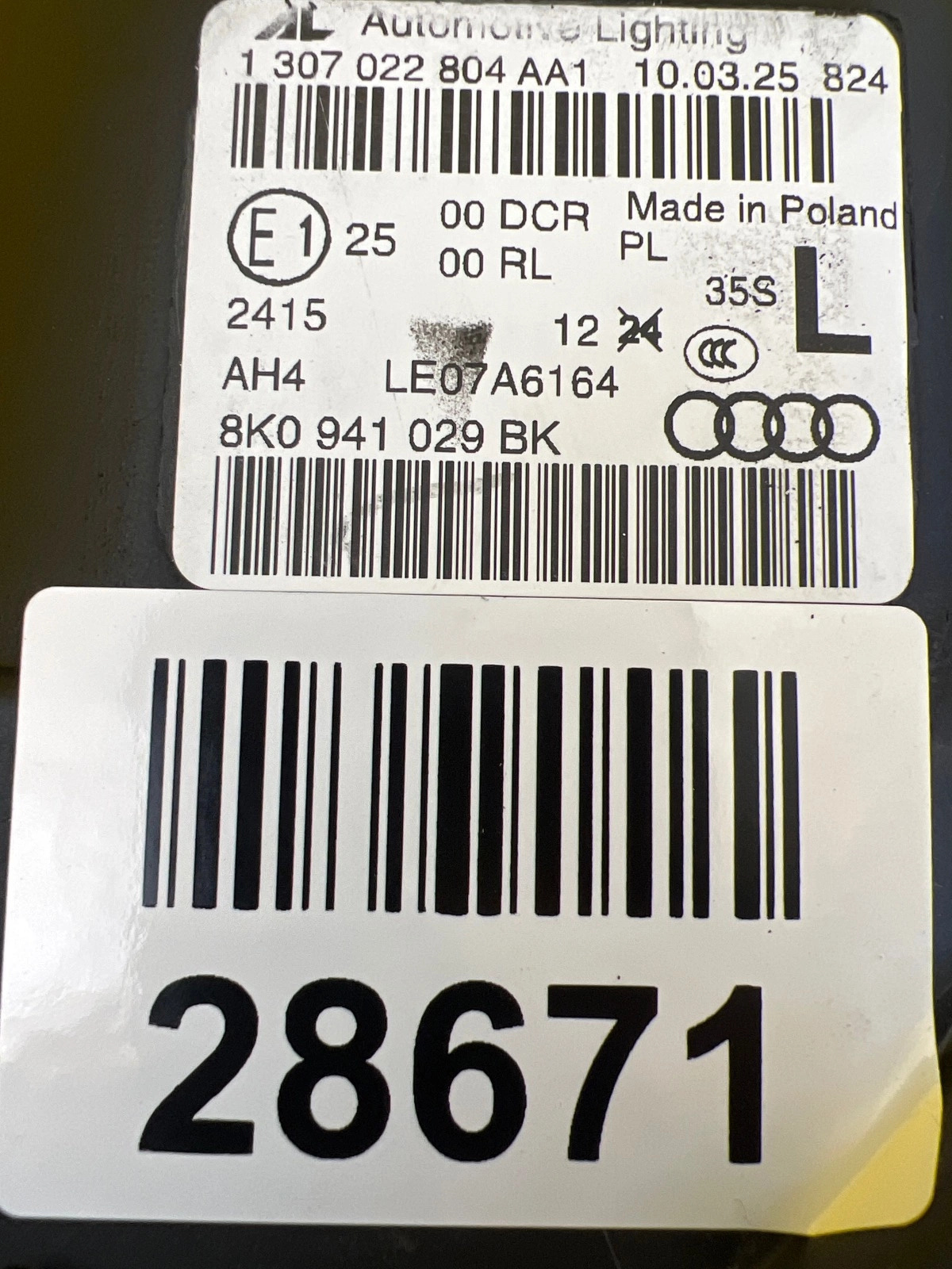 | Référence de la pièce | 8K0941029BK |